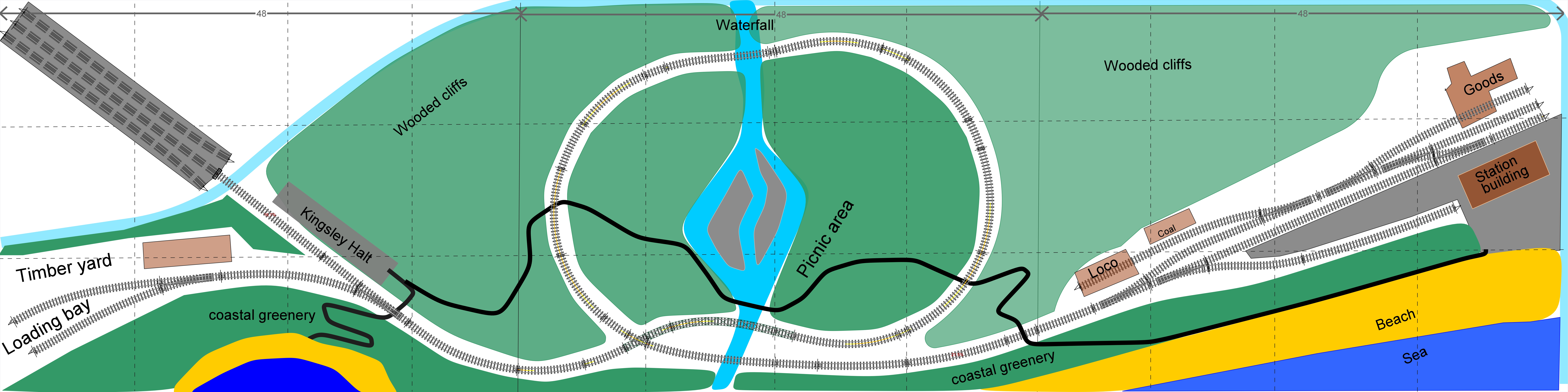 Broadwater Junction is a romantic fictional location. It represents a main line running close to the sea somewhere in the Western Region, probably in Wales. It is anaologue control and is usually up and running in the clubroom for members to run their trains.