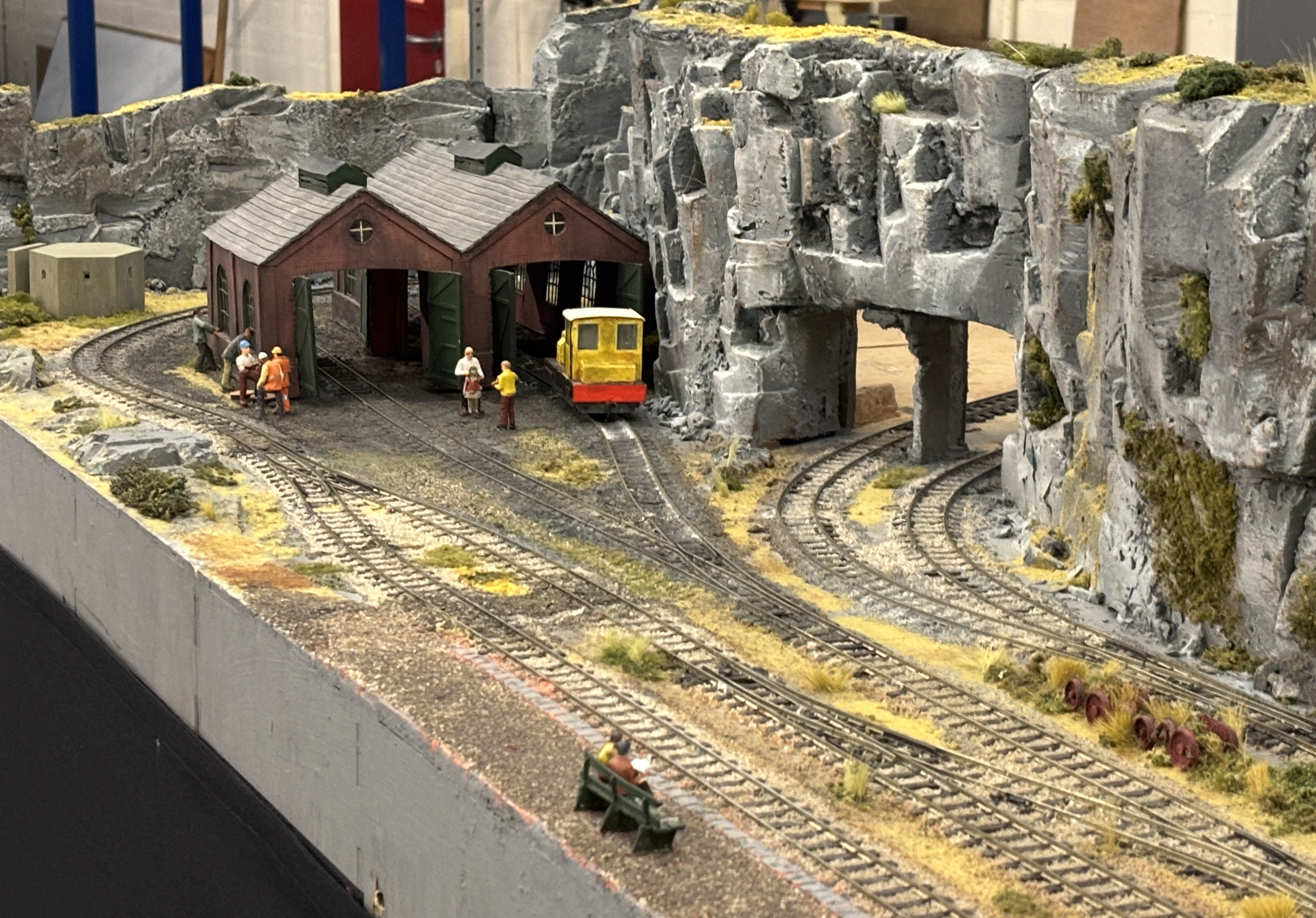 This is a ScaleSeven layout which means the track is built to a finer standard the normal 0 gauge. Ellerton Road is usually up and running in the clubroom. Only stock built to ScaleSeven standards can run on ScaleSeven layouts.